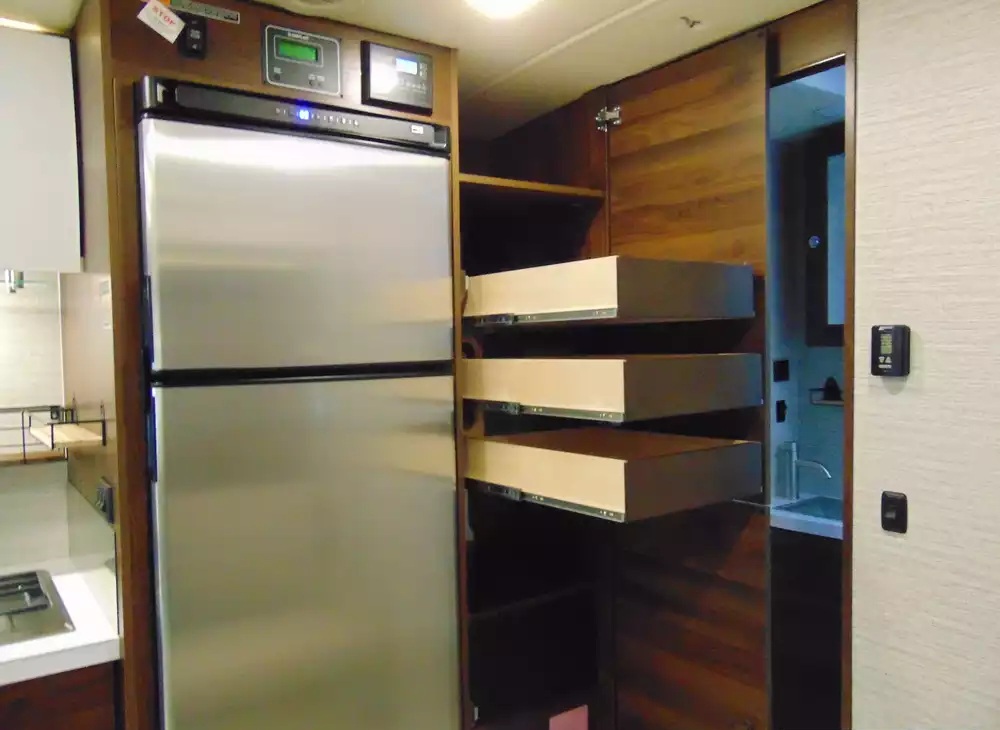 - Norcold double-door refrigerator (gas/110V) offers flexible cooling options